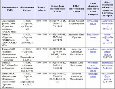 Получить дополнительную информацию вы можете по телефонам горячей линии страховых медицинских организаций, указанным в таблице. Кроме того, получить консультацию можно обратившись на сайт Фонда медицинского страхования www.sartfoms.ru. раздел Задать вопрос , или направить вопрос на адрес электронной почты general@sartfoms.ru. Если же доступа в интернет нет, вопрос можно задать сотруднику Фонда по телефонам: 46-63-29 (8-927-226-63-29),46-62-27 (8-927-226-62-27), 8-937-968-28-84 в рабочие дни с 09.00 до 17.00.
